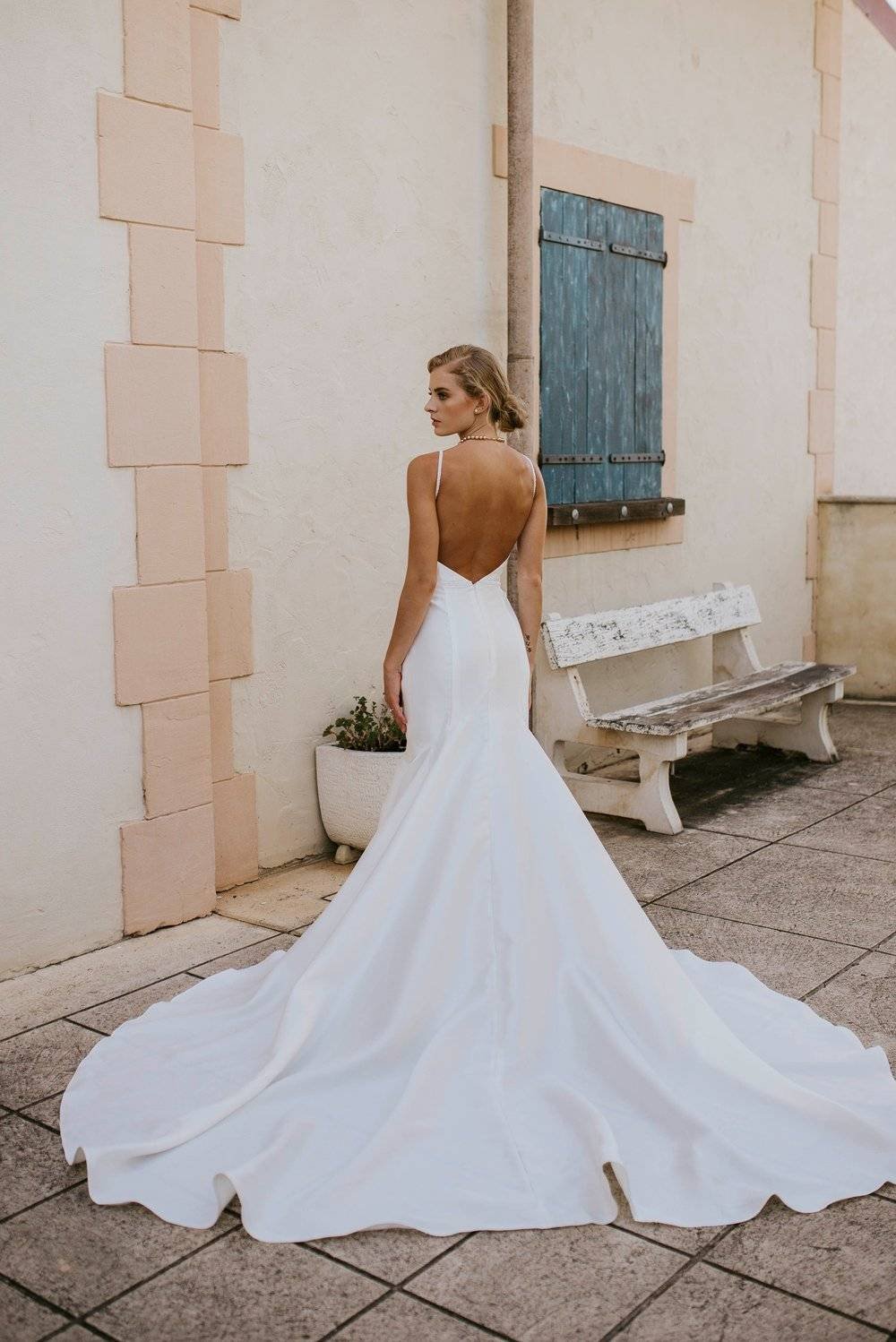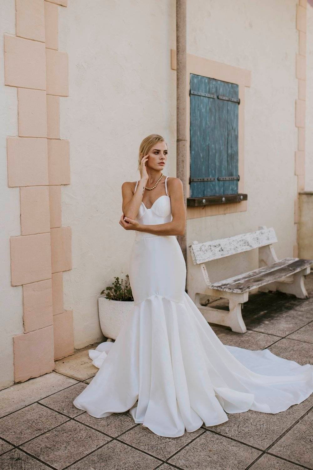 Featuring a fitted bustier, striking silk and an extravagant mermaid silhouette.