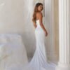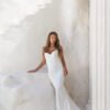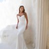 THIS ELEGANT STRAPLESS MERMAID GOWN FEATURES A FLATTERING SWEETHEART NECKLINE WITH INTRICATE DRAPED AND RUCHED DETAILING ACROSS THE BODICE. ITS SLEEK SILHOUETTE FLOWS GRACEFULLY TO A FLARED HEM, EMBODYING REFINED SOPHISTICATION.