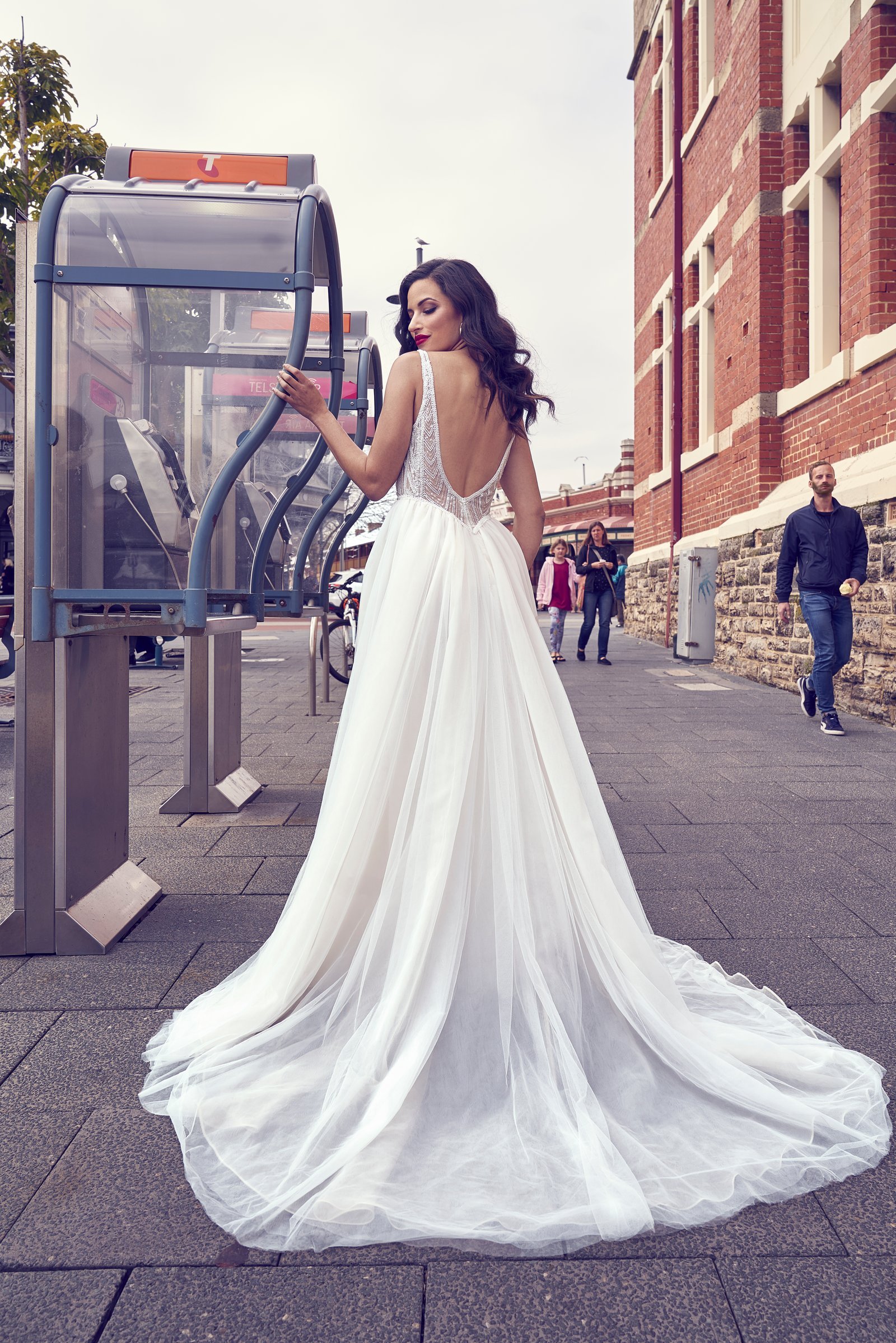A glamorous structured bodice paired with a full tulle skirt.